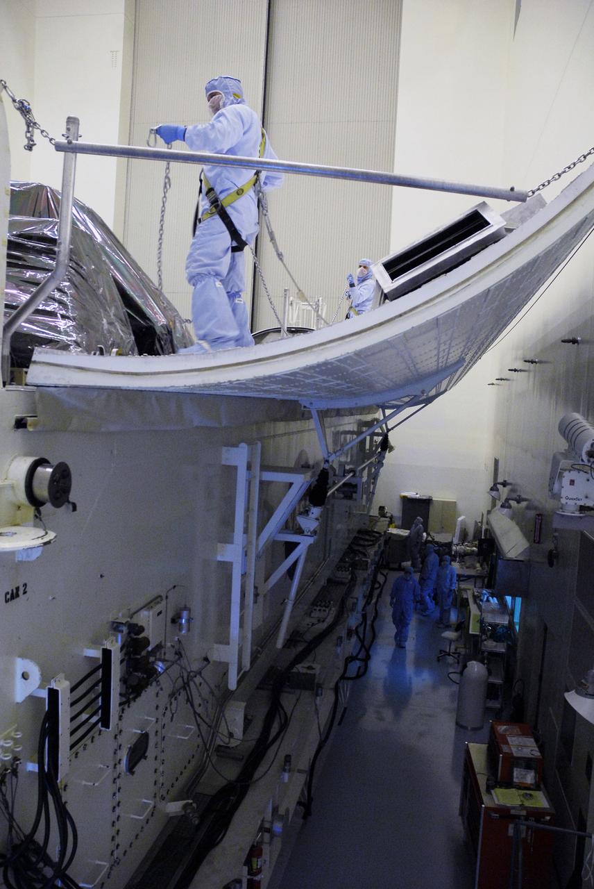 CAPE CANAVERAL, Fla. - In the Payload Hazardous Servicing Facility at NASA's Kennedy Space Center, the open doors of the payload canister reveal the first of the carriers associated with the STS-125 mission to service the Hubble Space Telescope that have been installed in it. Four carriers in all will be transferred to Launch Pad 39A. At the pad, all the carriers will be loaded into space shuttle Atlantis’ payload bay. Launch of Atlantis is targeted for Oct. 10. Photo credit: NASA/Jack Pfaller