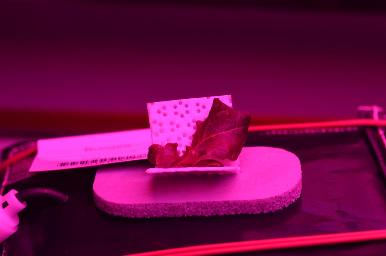 Astronaut Scott Kelly initiated VEG-01 B, the second crop of lettuce, on July, 8, 2015, and both Kelly and Astronaut Kjell Lindgren cared for the plants. The crop grew for 33 days. VEG-01 B included one set of six plant pillows planted with red romaine lettuce seeds. On Aug. 10, 2015, the crew harvested and consumed leaves from each plant. This was the first crop grown and consumed in NASA hardware. They harvested the rest of the plant tissue and froze it in the station’s Minus Eighty-Degree Laboratory Freezer for ISS (MELFI) for return to Earth for further study including microbial analysis, antioxidant capacity, mineral analysis and anthocyanin concentration.