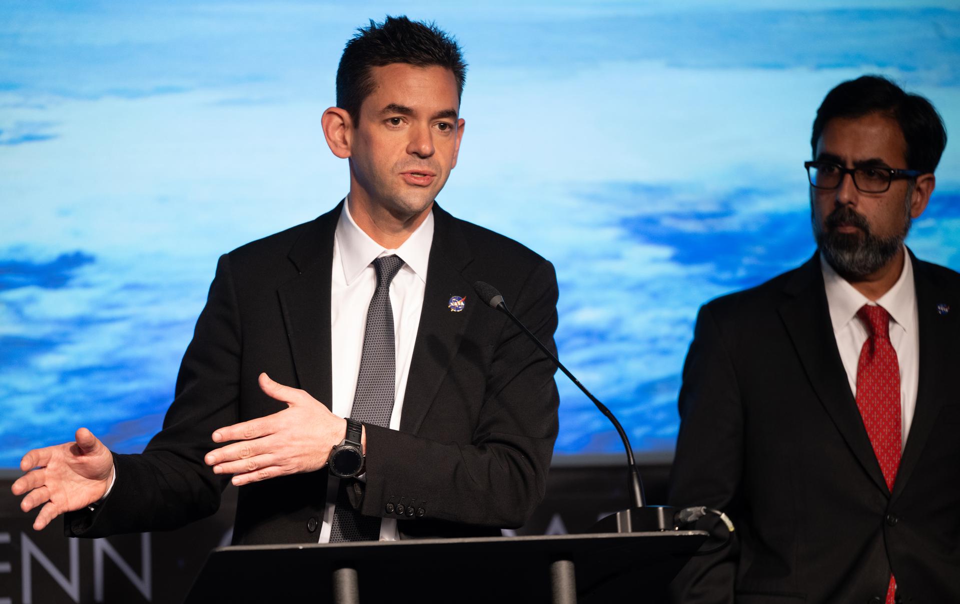 NASA Administrator Jared Isaacman, is seen as he provides an update on the International Space Station and its crew, Thursday, Jan. 8, 2026, at the Mary W. Jackson NASA Headquarters building in Washington. Photo Credit: (NASA/Joel Kowsky)