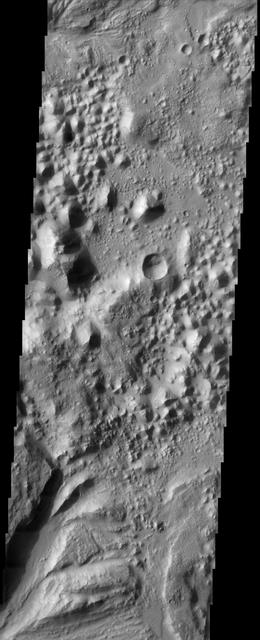This image of Hydaspis Chaos from NASA Mars Odyssey spacecraft shows the source terrain for several outflow channels on Mars. VIS Instrument. Latitude 3.2, Longitude 333.2 East. 19 meter/pixel resolution. http://photojournal.jpl.nasa.gov/catalog/PIA04000