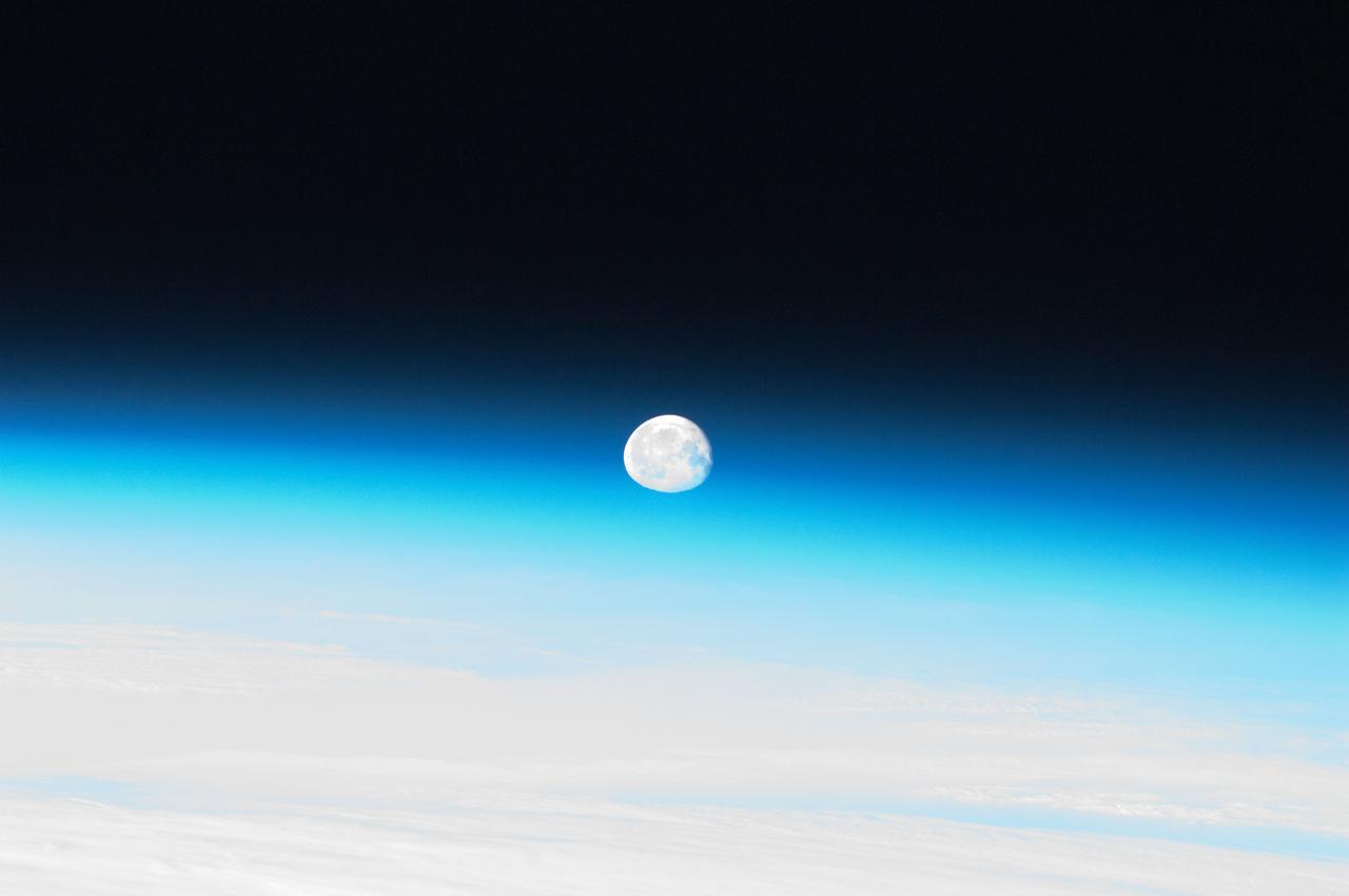 ISS030-E-031735 (11 Jan. 2012) --- One of a series of photos of the moon and Earth’s atmosphere as seen from the International Space Station over a period of time that covered a number of orbits by the orbital outpost.
