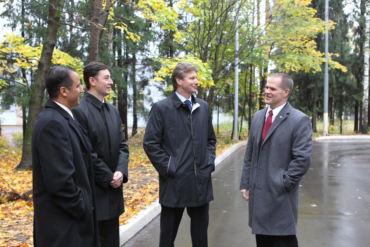 NASA Flight Engineer Kevin Ford of the Expedition 33/34 crew (right) exchanges stories with Expedition 32 crewmembers Joe Acaba of NASA (left), Sergei Revin (second from the left) and Expedition 32 Commander Gennady Padalka (second from the right) at the Gagarin Cosmonaut Training Center in Star City, Russia October 9, 2012. Ford, along with Soyuz Commander Oleg Novitskiy and Flight Engineer Evgeny Tarelkin, flew to the Baikonur Cosmodrome in Kazakhstan for final preparations for their launch to the International Space Station on October 23 in their Soyuz TMA-6M spacecraft. Padalka, Revin and Acaba, who returned to Earth in their Soyuz spacecraft September 17 after four months in space, attended welcome home ceremonies at the Training Center following the departure of Ford, Novitskiy and Tarelkin for Baikonur. NASA/Stephanie Stoll