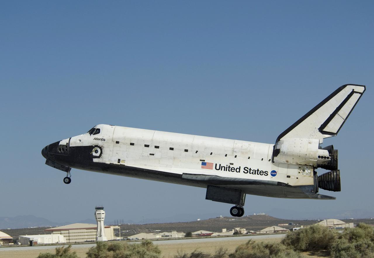 STS125-S-063 (24 May 2009) --- Space Shuttle Atlantis approaches landing on Runway 22 at Edwards Air Force Base in California, ending the STS-125 mission to repair and upgrade NASA?s Hubble Space Telescope. Onboard are astronauts Scott Altman, commander; Gregory C. Johnson, pilot; Michael Good, Megan McArthur, John Grunsfeld, Mike Massimino and Andrew Feustel, all mission specialists. The main landing gear touched down at 8:39:05 a.m. (PDT) on May 24, 2009. Nose gear touchdown was at 8:39:15 a.m. Wheel-stop was at 8:40:15 a.m., bringing the mission?s elapsed time to 12 days, 21 hours, 37 minutes, 9 seconds. Landing opportunities on May 22, May 23 and May 24 were waved off due to weather concerns at NASA?s Kennedy Space Center in Florida, the shuttle?s primary landing site. Through five spacewalks, the Hubble Space Telescope was refurbished and upgraded with state-of-the-art science instruments that will expand Hubble's capabilities and extend its operational lifespan through at least 2014.